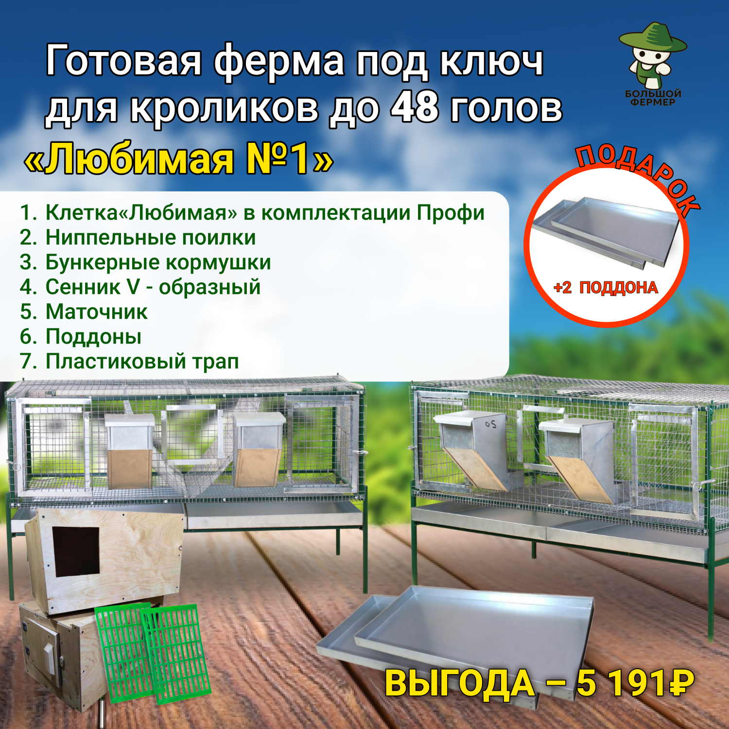 Ферма для кроликов «под ключ» «Любимая №1» — это полностью укомплектованный комплект для начала профессионального разведения.