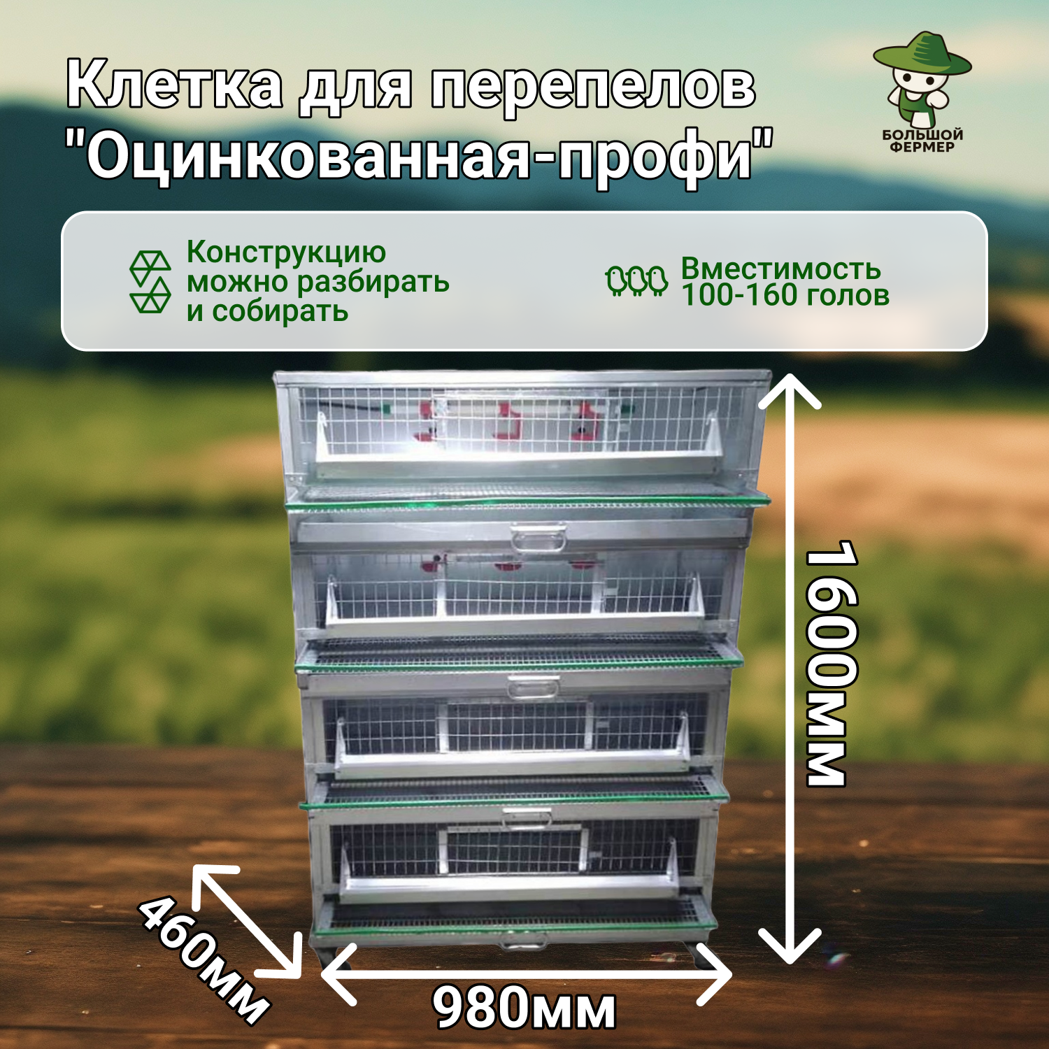 Клеточная батарея перепелов "100-160Cheerful-Pц" для ведения подсобного хозяйства