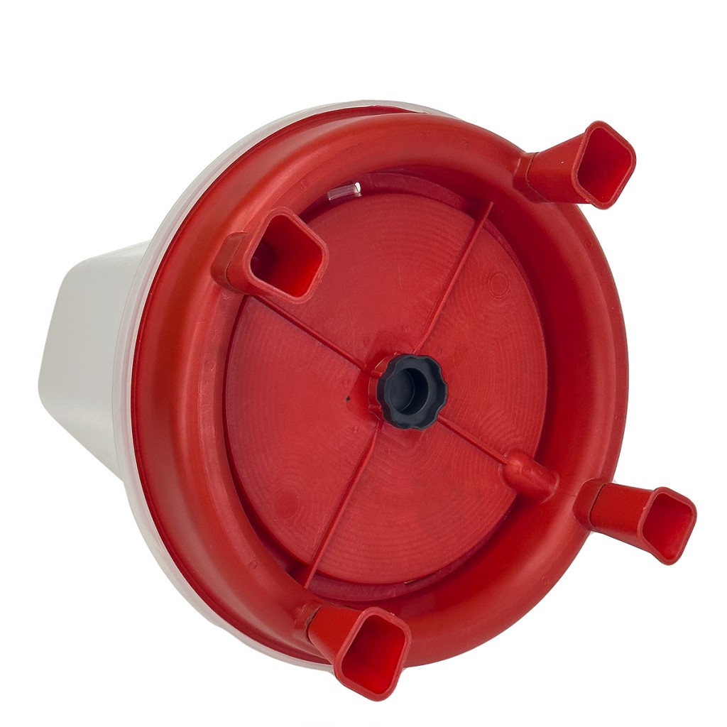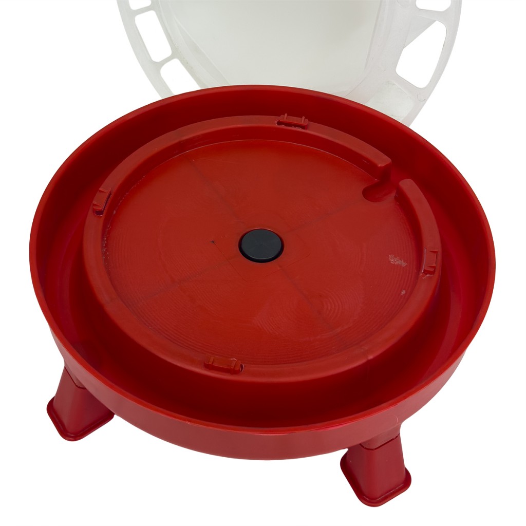 - Поилка для птиц состоит четырех частей, которые легко собираются: резервуар, тарелка, ручка с отверстием для подвешивания и съемные ножки